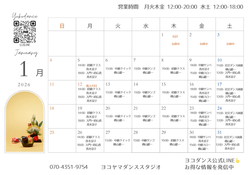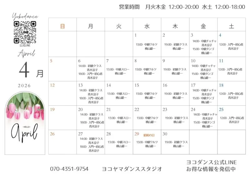 公式LINEに登録すると、レッスンやイベントの最新情報をまとめて受け取れます。