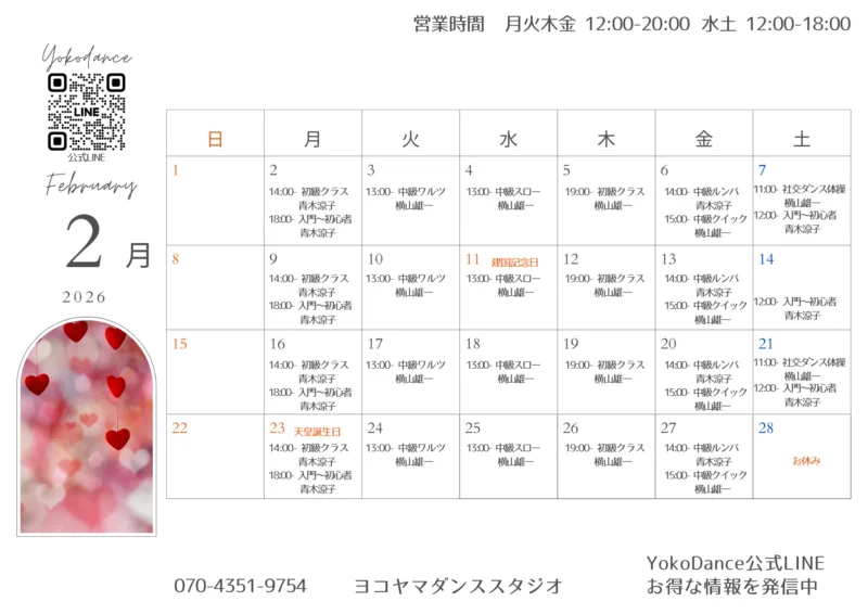 毎月、最新のレッスン予定表をLINEで配信しています。