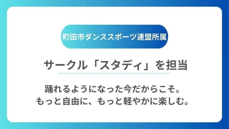 町田市ダンススポーツ連盟主催の初心者講習会で、2025・2026年と2年連続で講師を担当。
