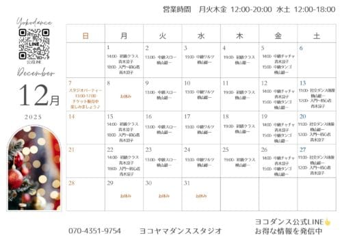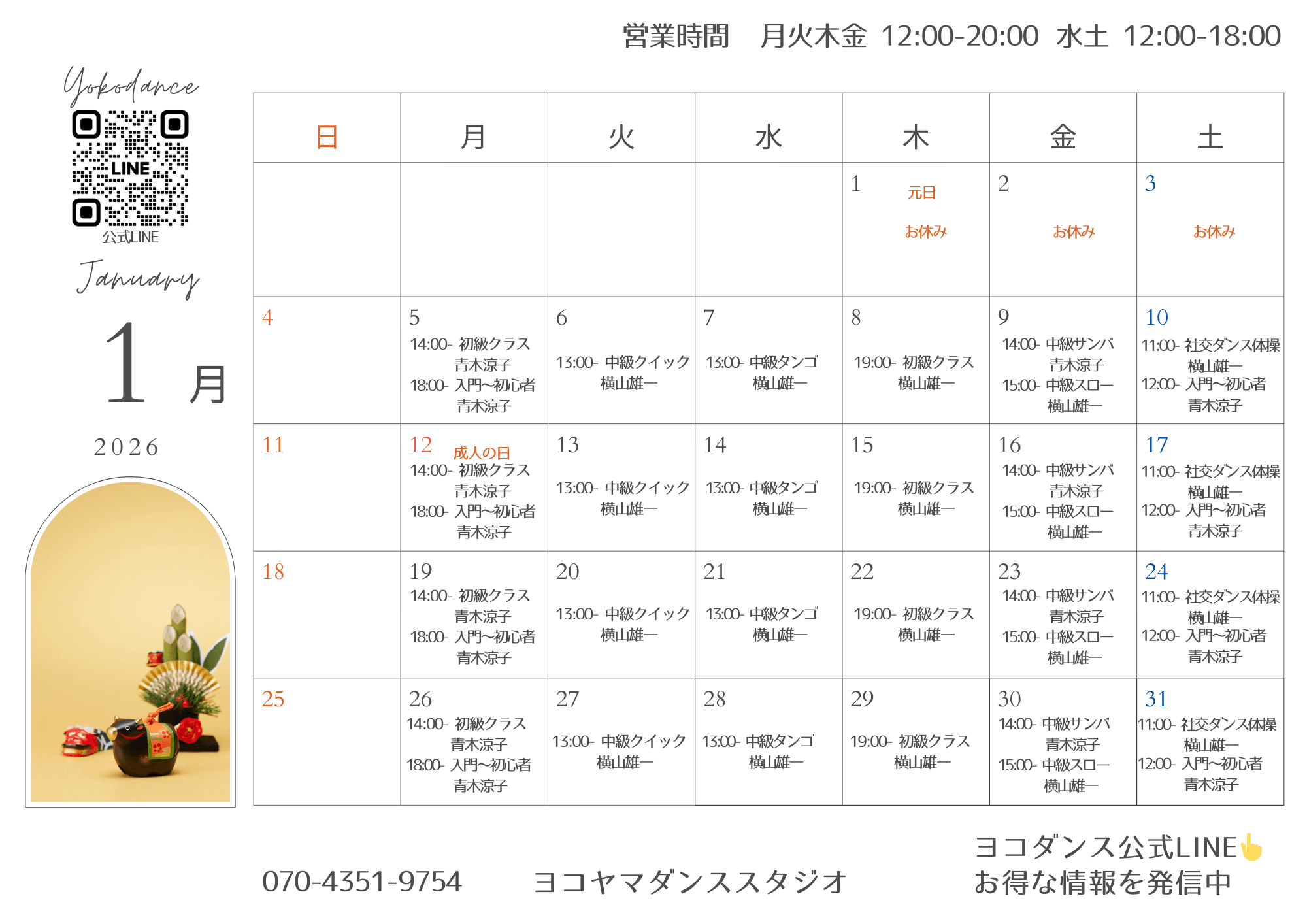 2026年1月のグループレッスン予定表を掲載いたします。