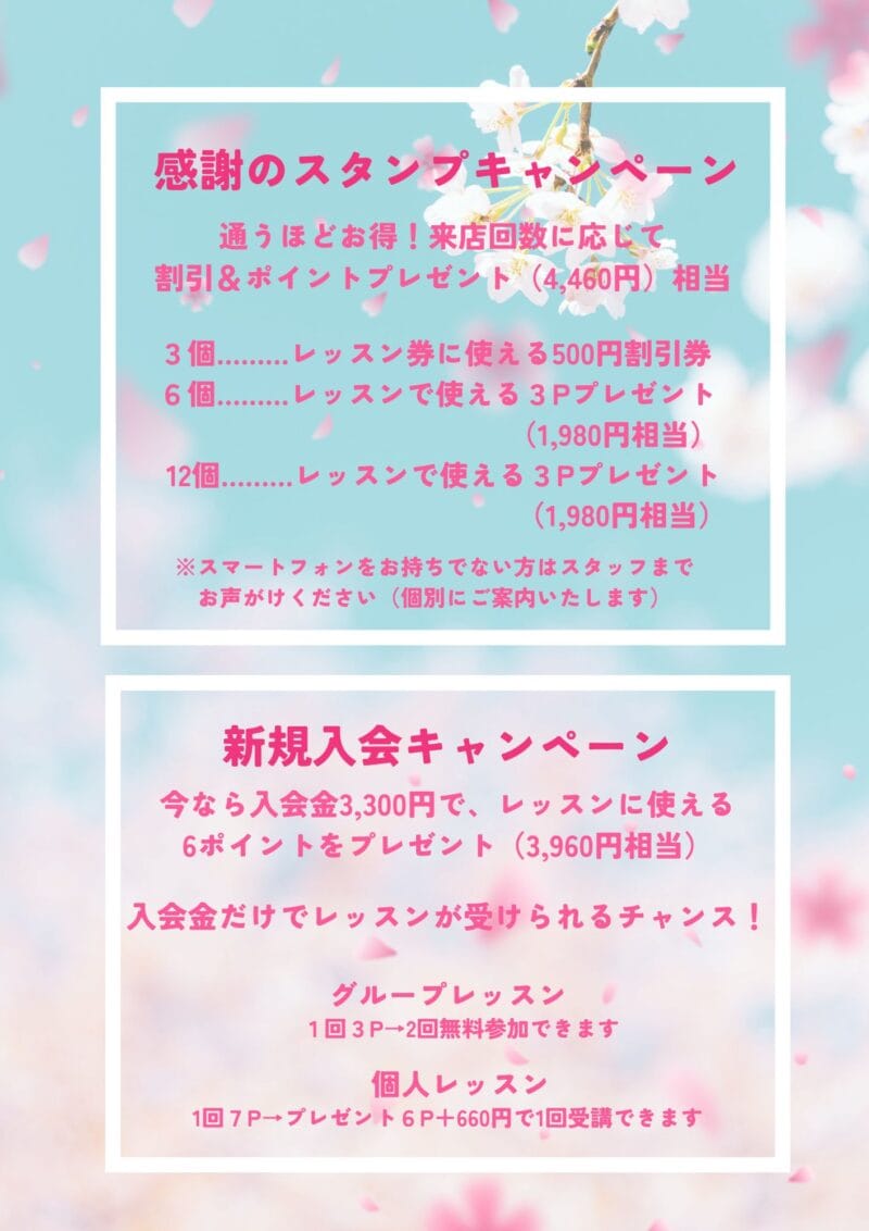 • キャンペーン期間中、レッスンに来るとスタンプカードにスタンプします。